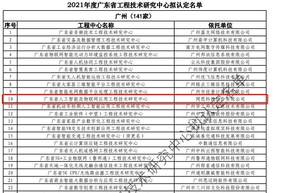 日前,广东省科技厅发布2021年度广东省工程技术研究中心名单。经过层层筛选、专家评审,依托开云体育-开云体育(中国) 建设的“广东省人工智能及物联网应用工程技术研究中心”榜上有名。广东省工程技术研究中心主要依托省内行业、领域具有科技实力的、拥有一定规模以上创新型企业建设,部分依托高校和科研院所组建。工程中心旨在